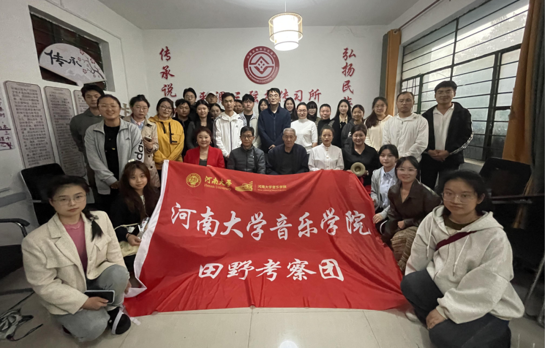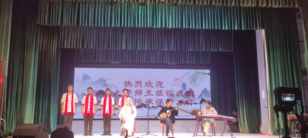 在活态传承方面,第一个重点考察对象是河洛大鼓。考察团邀请非物质文化遗产河洛大鼓项目传承人张怀生老师,展示代表性曲目《九腔十八弯》,借此详细介绍了河洛大鼓的板式、表演、伴奏乐器等知识。还单独演唱了速度较快的飞板,又称“火爆腔”,音调高扬激烈,撼人心魄。此外,张怀生老师还带领考察团师生体验河洛大鼓的伴奏乐器钢板,使大家对河洛大鼓这一说唱艺术有了更为直观、深刻的认识。