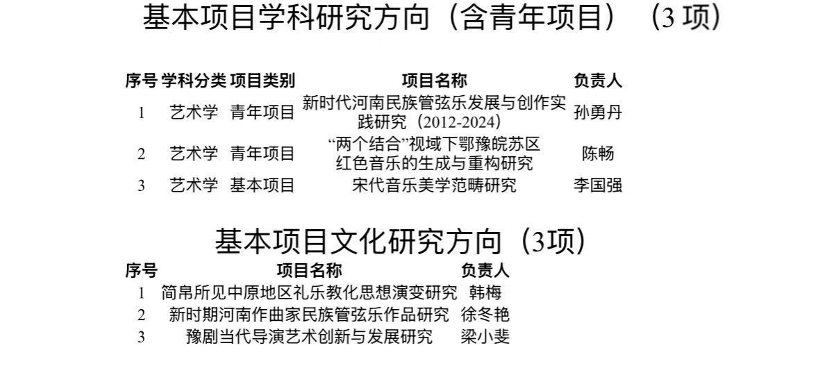 近日,河南省哲学社会科学规划项目、中华民族音乐传承出版工程精品出版项目、国家艺术基金资助项目等科研与艺术创作项目相继发布了立项名单,bilibili下载 多位教师申报的项目获批立项。