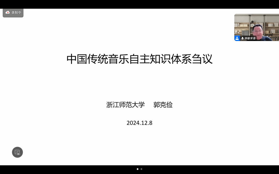 浙江师范大学施光南音乐文化研究院院长、博士生导师郭克俭教授关于“中国传统音乐自主知识体系刍议”的发言,阐述了构建自主知识体系的重要性,提出要将传统音乐的创新发展纳入中国哲学社会科学自主知识体系建设中,建构理论研究、创作表演、教育教学全方位、全领域、全要素的传统音乐自主知识体系。