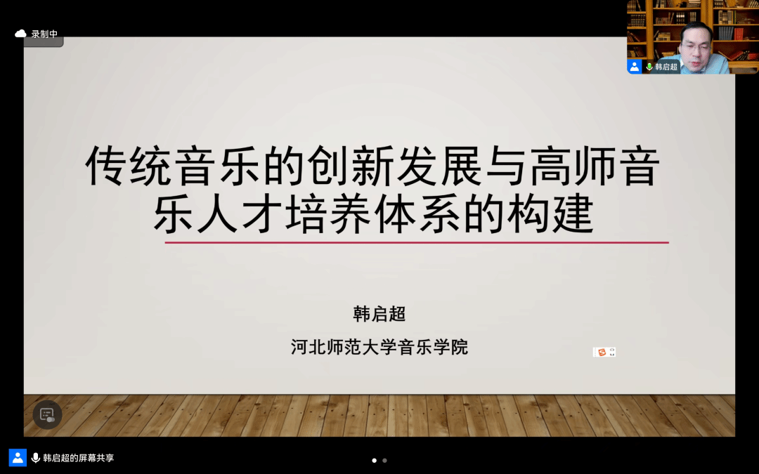 博士生导师韩启超教授作题为“传统音乐的创新发展与高师音乐人才培养体系的构建”的发言,阐释了建构自主知识体系的重要性和必要性。他结合自己参与全国义务教育音乐教材编撰工作的体会,指出高师音乐人才培养体系的改革势在必行,应在守正创新的基础上与时俱进。