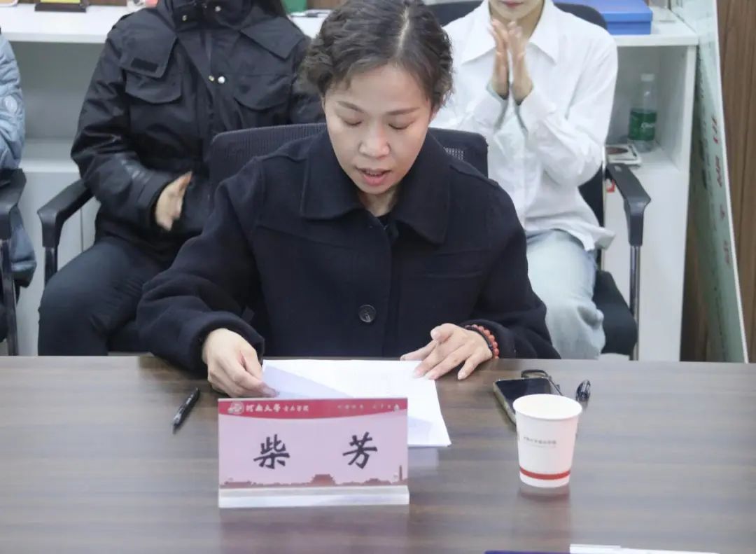 捐款人王景玲发言,她表达了对学校艺术教育的支持。此次捐款旨在发展学院教育事业,助力艺术实践的开展,提升教育质量,她期望通过捐赠能带动更多人对教育的关注与投入。