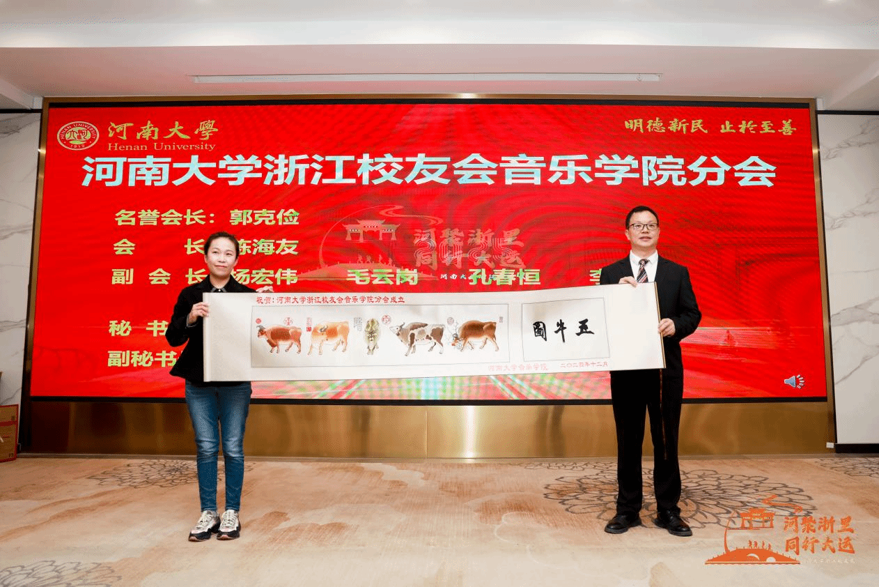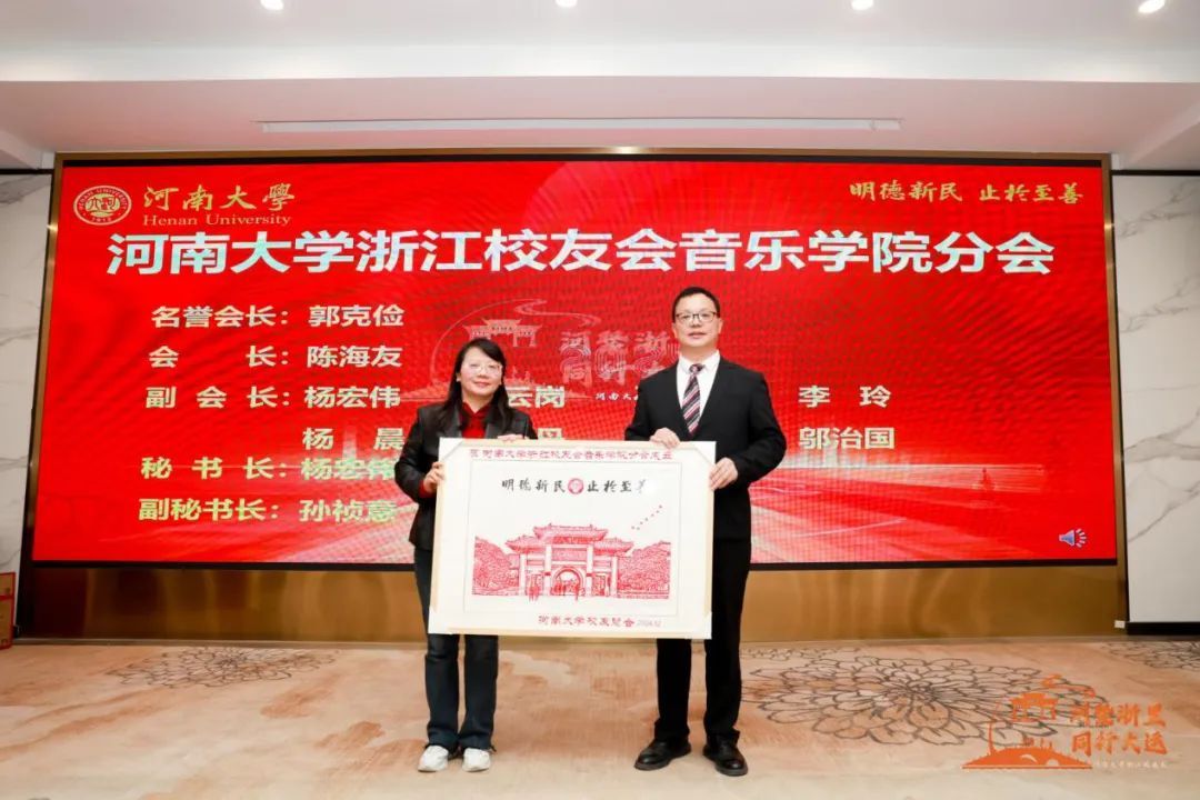 薛波副校长致辞。他表示,bilibili下载 始建于1958年,是河南省成立最早的高等艺术学府,也是全省唯一拥有本硕博完整培养体系的音乐院系。近年来学院高度重视教学、科研、学科建设工作,在学科内涵建设、人才培养、党建思政等方面都取得了亮眼的成绩,成为中原地区乃至全国音乐人才的摇篮。此次分会的成立,标志着学校与在浙校友之间的联系将更加紧密,合作将更加深入,希望分会能够持续发挥桥梁作用,为bilibili下载 研究型、综合性、国际化世界一流大学建设汇聚起校友的磅礴力量。
