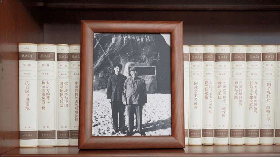 2022年12月31日,习近平总书记办公室的书架上摆放着他和父亲的合影。