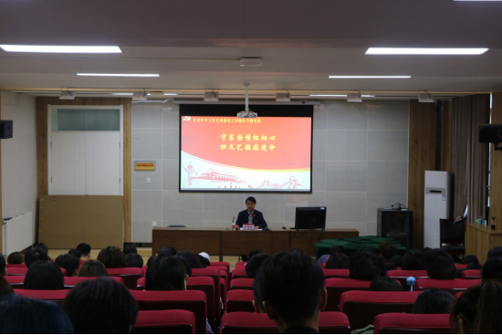 张国强以“本次党课选题的背景、何为家国情怀、如何实现文艺报国”为主线,结合自己深入学习贯彻习近平新时代中国特色社会主义思想的认识和体会以及个人的成长经历,为同学们带来了一堂生动的党课。