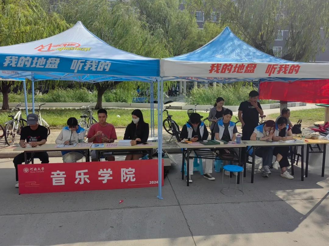 迎新志愿者们精心布置两个迎新点,迎新工作正式开始!