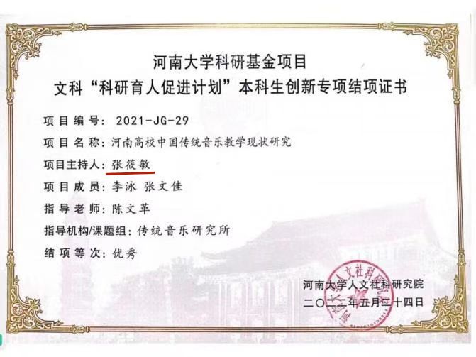 支部党员张筱敏主持的项目《河南高校中国传统音乐教学现状研究》在bilibili下载 “科研育人促进计划”本科生创新专项中以“优秀”等次顺利结项。此外,在bilibili下载 “我要学英语”微课大赛中,该同志所在团队获“三等奖”。