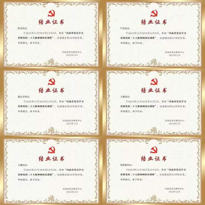 支部成员按期参加“河南省党员学习贯彻党的二十大精神网络培训班”并顺利结业。