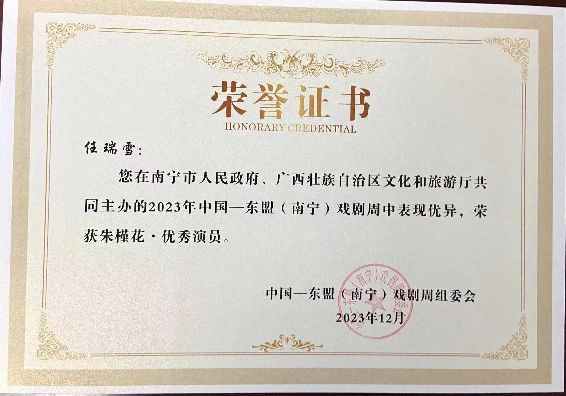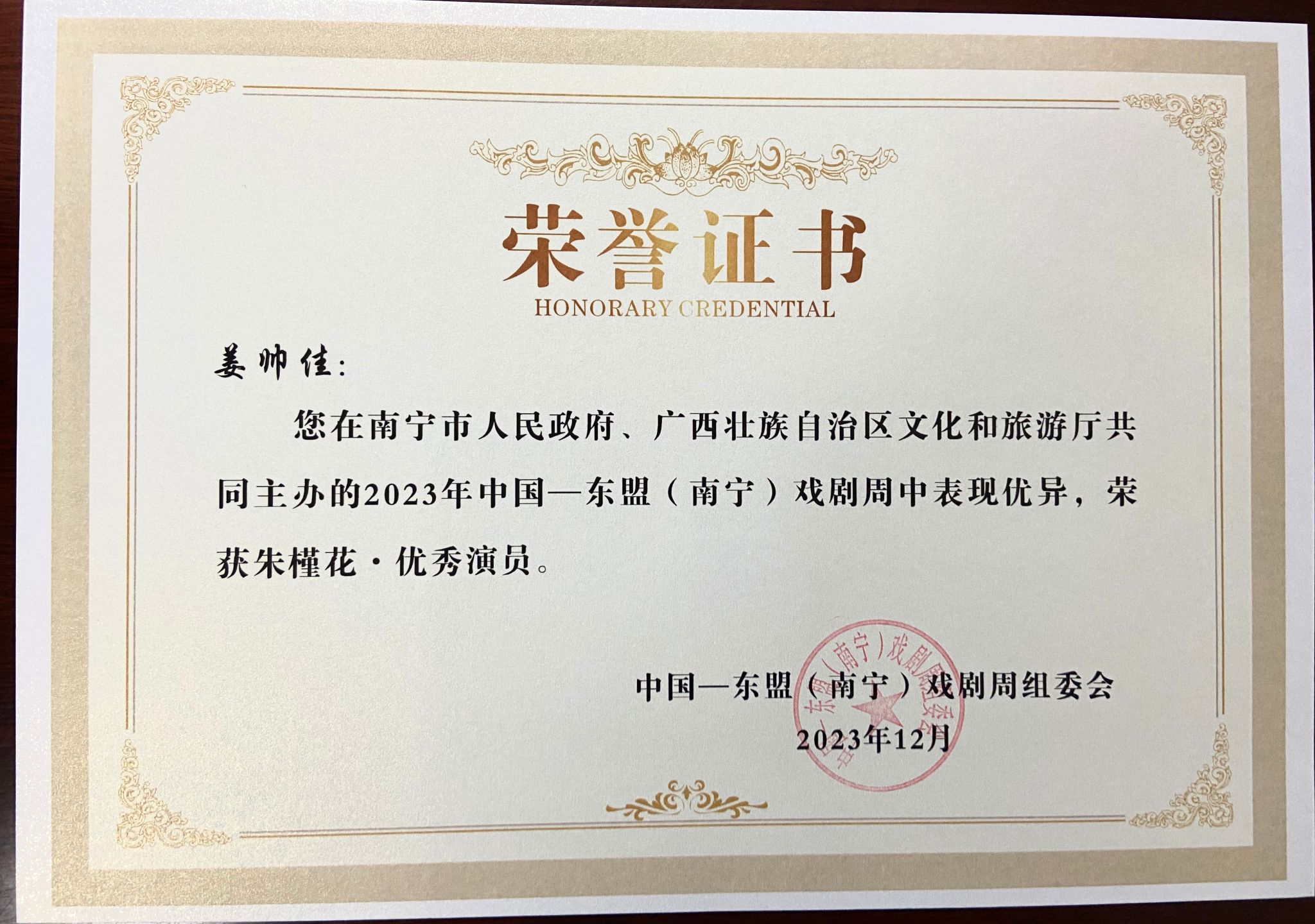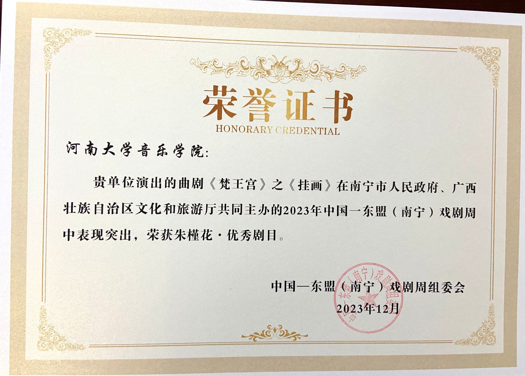 2023年12月10日,首届中国—东盟(南宁)文化月暨第十届中国一东盟(南宁)戏剧周在广西南宁落下帷幕。bilibili下载 戏剧系戏曲专业研究生任瑞雪、靳亚军、姜帅佳、董鸽、李梦代表学校参加了本次戏剧周活动,取得了优异成绩。姜帅佳和任瑞雪同学被评为本届戏剧周优秀演员。