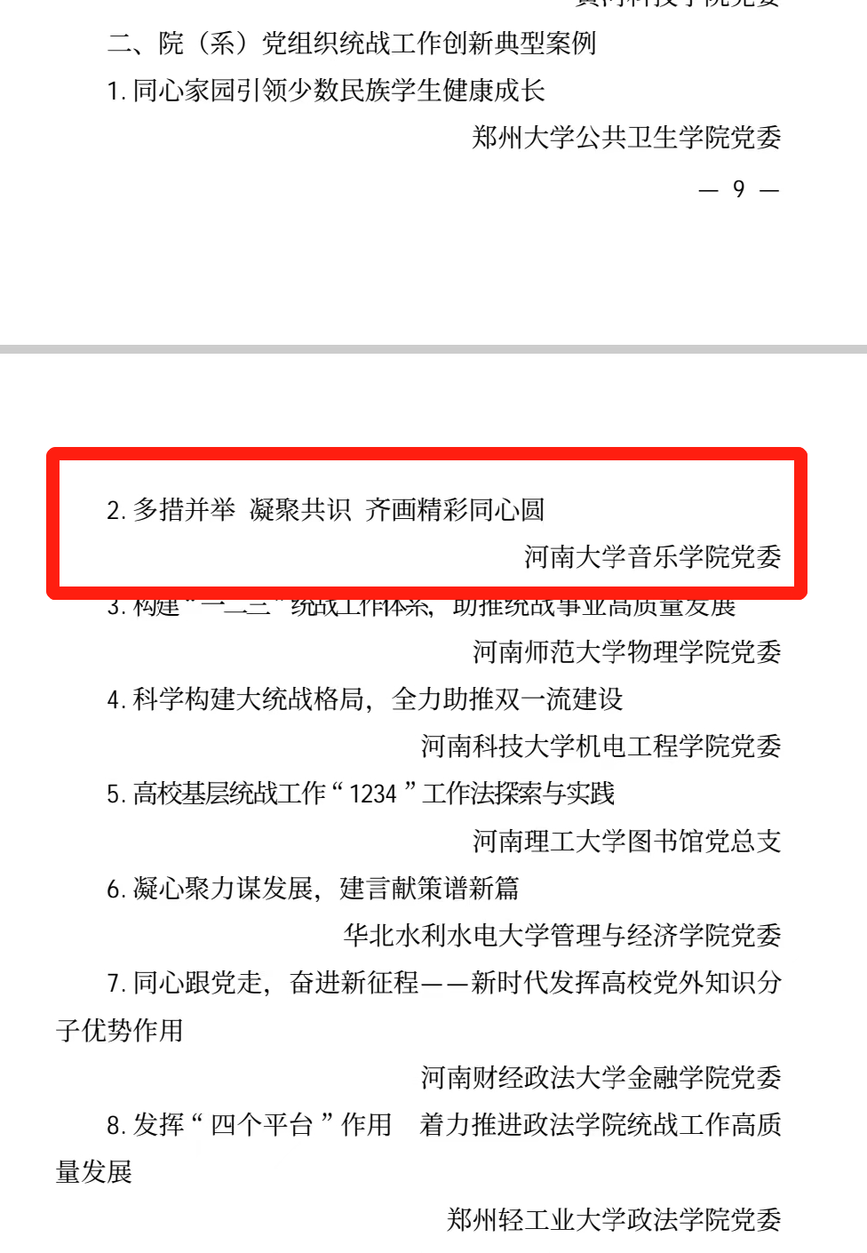 1月18日,在河南省高校2022年度统战工作中,bilibili下载 党委的“多措并举 凝聚共识 齐画精彩同心圆”工作案例获得“2022年度河南省高校院(系)党组织统战工作创新典型案例”。在校党委、行政的正确领导下,bilibili下载 坚持以习近平新时代中国特色社会主义思想和党的二十大精神为指导,立足专业优势,通过开展内涵丰富的思想政治引领活动,不断夯实思想基础、建设有效载体、搭建工作平台,开展“同心共识”系列活动,不断构建完善“大统战”工作格局,齐画精彩同心圆。