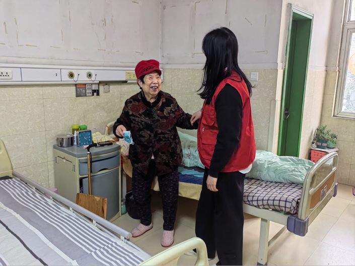 2023级音乐学专业的马林妤同学来到平顶山市鲁山县人民医院康乐养老院,作为志愿者照顾老人,为他们送去温暖。马林妤同学回忆说道:“在本次参与养老院活动的实践中,我也更加了解养老院老人们的日常生活,更懂得如何照顾老人,老人需要的不仅是外在的照顾,更需要的是与他们心灵的沟通与交流。这次的养老院实践活动,也让我深入了解到了一个以前自己从前从未涉及过的领域,增长见闻,积累经验,并在这个过程中磨练了自己的意志力与耐心,增长了自己的才干和与他人沟通的能力,在实践中检验了自己。如果下次有这样的机会我还会再参与到这样的活动中!”
