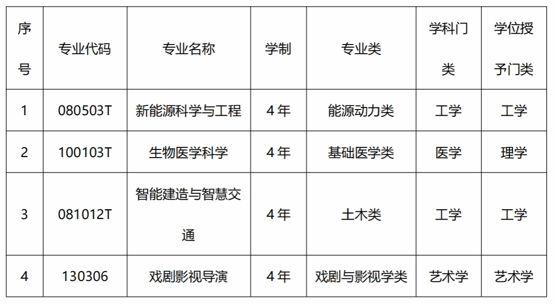 近日,教育部发布《关于公布2024年度普通高等学校本科专业备案和审批结果的通知》(教高函〔2025〕3号),我校申报的新能源科学与工程、生物医学科学、智能建造与智慧交通、戏剧影视导演等4个本科专业成功获批。这一成果是我校积极响应教育部等五部门印发的《普通高等教育学科专业设置调整优化改革方案》,聚焦国家战略需求,深化本科专业建设的重要体现。