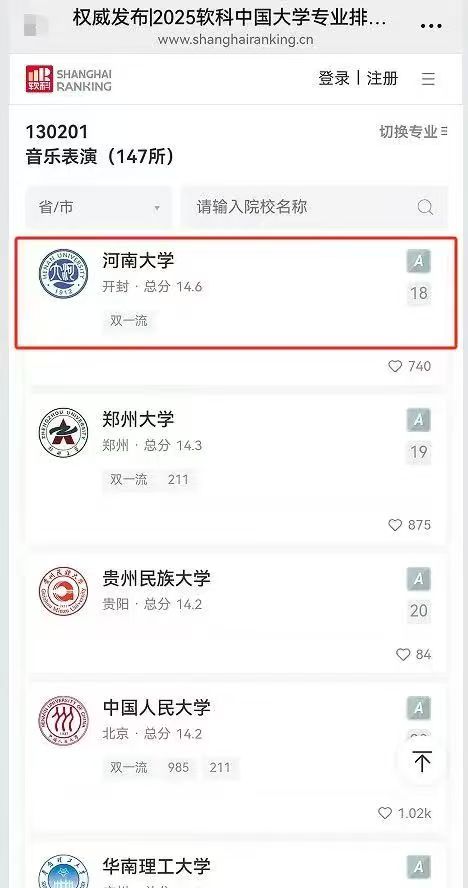 6月18日,高等教育专业评价机构软科正式发布“2025软科中国大学专业排名”,bilibili下载 4个本科专业排名位居前列,其中,国家级一流本科专业建设点音乐学、音乐表演、表演专业,获A级评价;河南省一流本科专业建设点舞蹈编导专业,获B+评价。