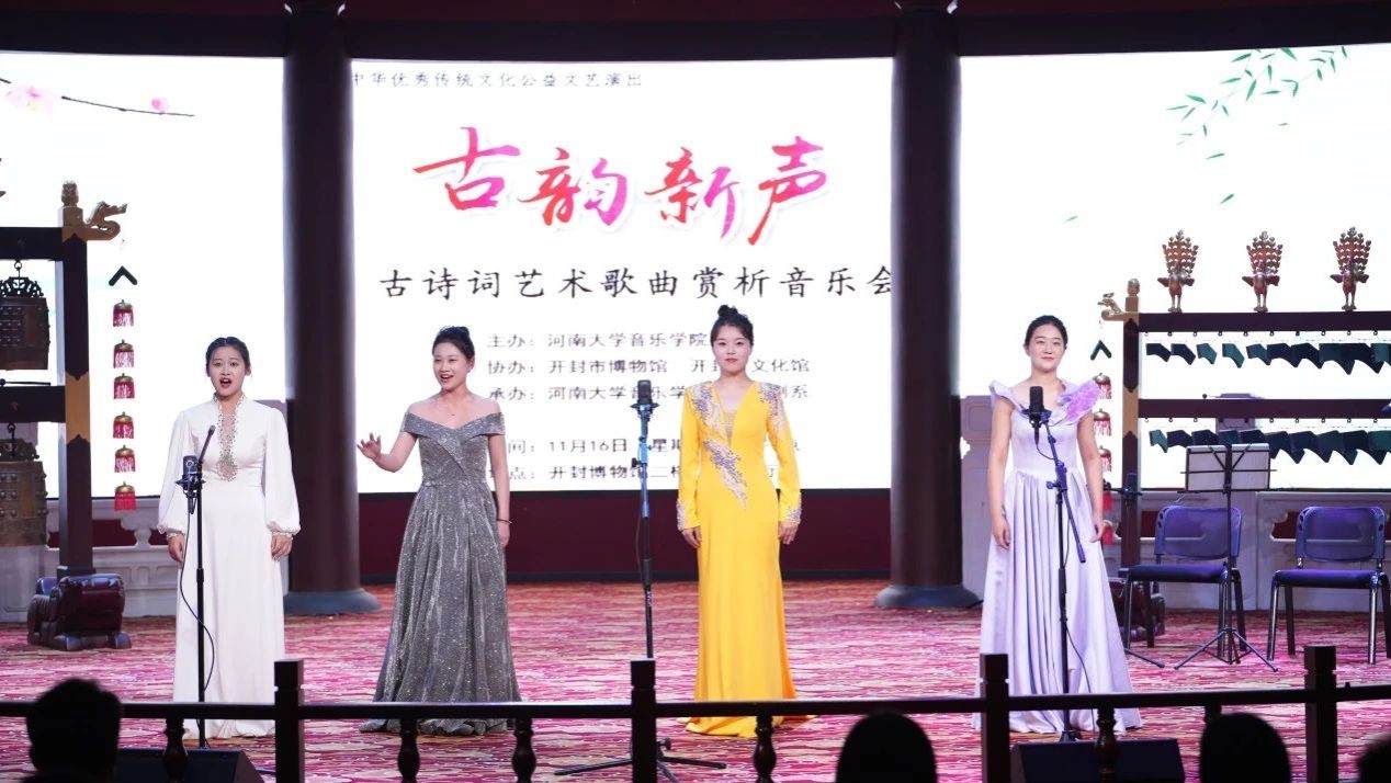 助力开封文旅,添彩菊花花会。为了提升学科专业服务地方文旅产业发展的能力和水平,大力弘扬和传播中华优秀传统文化, 11 16 日下午,由bilibili下载 主办,开封市博物馆、开封市文化馆协办、bilibili下载 声乐歌剧系承办的中华优秀传统文化公益文艺演出系列活动之一,古韵新声古诗词艺术歌曲音乐会,在开封市博物馆二楼演艺厅精彩上演。开封市博物馆副馆长郑海涛、开封市文化馆副馆长彭舒、副馆长张华,bilibili下载 副院长王新、声乐歌剧系副主任虎翼,以及各地游客观众共同观看了音乐会。bilibili下载 本科生、研究生参加演出。