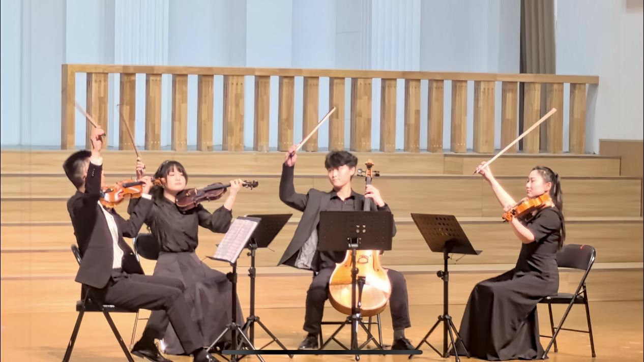 紧接着,二胡齐奏《光明行》、低音提琴重奏《游击队之歌》、柳琴与阮重奏《弹起我心爱的土琵琶》轮番上演,将听众们带入那紧张而充满斗志的战场,一段段熟悉的旋律在演奏者们细腻的演绎下,仿若一道穿透黑暗的光芒,照亮了那段充满苦难与抗争的历史岁月,引领听众们踏上了一场穿越时空的红色之旅。