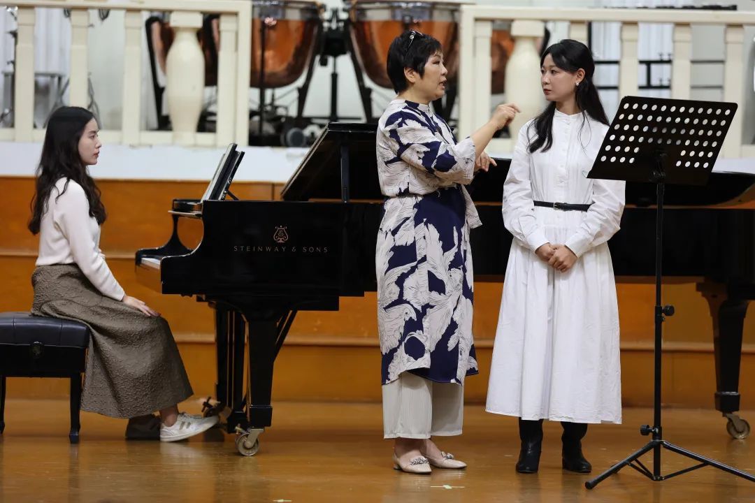 师生声乐作品演唱的现场指导,对声乐演唱技术与舞台表演进行了细致讲解。讲座过程中,杨光教授对专业、职业、事业的追求与定位;演唱德语、法语、意大利语作品时语言、语气、语感的技术处理给予了详细分析,提出了声音要有清晰的“分辨率”以及声音共鸣传播中的“暴露感”等新颖的教学理念。杨光教授深入浅出的讲解和形象生动的示范教学给予现场观众极大的启发,赢得了台下师生的阵阵掌声。