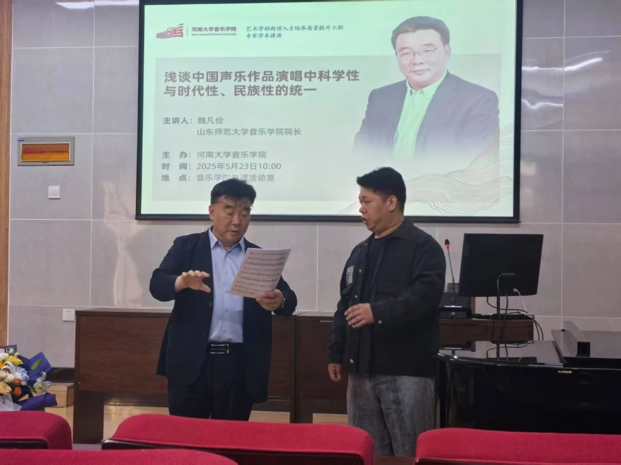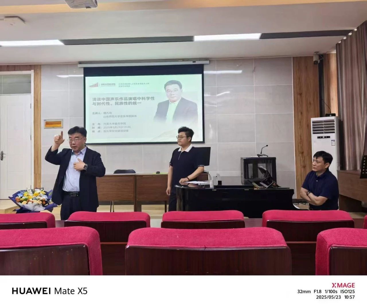 院长魏凡俭教授担任主讲人,以“浅谈中国声乐作品演唱中科学性与时代性、民族性的统一”为主题,为师生带来了一场兼具理论深度与实践启发的学术盛宴。